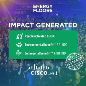 Here are 3 examples of the impact our energy floors have made in projects with LegoLand, WĂĽrth Italy, and Cisco Live. This can be seen in the images below.