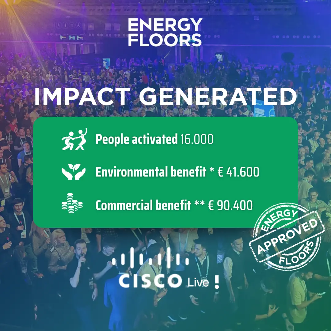 Here are 3 examples of the impact our energy floors have made in projects with LegoLand, WĂĽrth Italy, and Cisco Live. This can be seen in the images below.